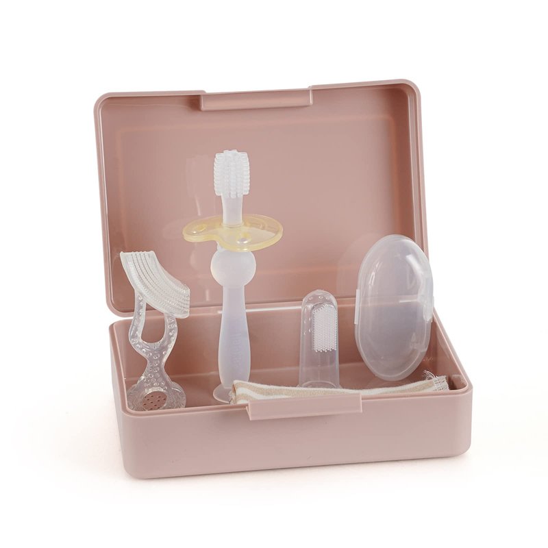 haakaa Training Toothbrush Set Oral Care Kit, Soft Silicone Toothbrush for Baby, Infants, Toddlers & Kids, Blush