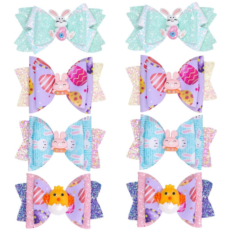 Haakong 8pcs Easter Bows Clips Easter Bows Easter Glitter Bunny Hairpin Party Favor Rabbit Headwear Party Supplies Egg Hair Accessories for Girls in Easter Party Holiday