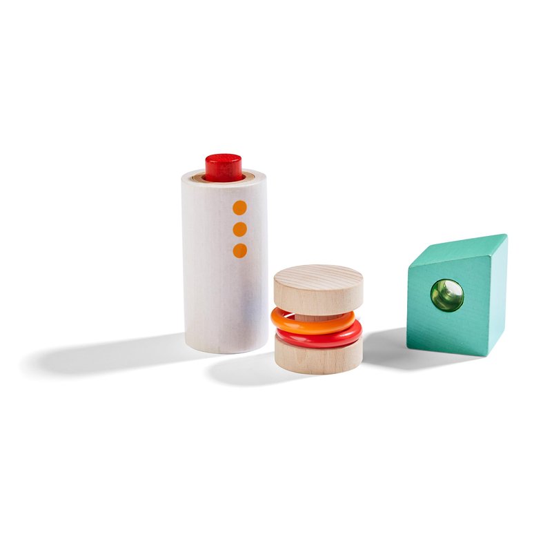 Set sail on a journey of creativity and discovery with the Discovery Wooden Building Blocks Boat Set! Perfectly crafted for young sailors and little architects, this 7-piece wooden block set offers endless possibilities for imaginative play and skill development. Ideal as stacking blocks for toddlers, these wooden blocks encourage children to build their own uniquely shaped ships, letting their creativity take the helm as they explore new horizons with every play session. Made in Germany from sustainably sourced wood, this nautical-themed block set exemplifies the quality and craftsmanship HABA is known for. Each block is thoughtfully designed with unique optical and auditory effects, enhancing sensory play and engaging young minds. Whether it’s the gentle sound of a rattle or the bright colors that capture attention, these blocks offer a multi-sensory experience that goes beyond ordinary building toys for toddlers. The Discovery Wooden Building Blocks Boat Set promotes fine motor skills and hand-eye coordination. Each block in the set features captivating details, such as rattles, mirrors, or other sensory elements, which provide visual and auditory stimulation. This not only keeps children engaged but also enhances their sensory processing skills. This 7-piece set is compatible with other HABA wooden building blocks and toddler building block collections, allowing for expanded play possibilities. Whether used alone or with other sets, these wooden toddler toys offer endless construction options, making them a versatile addition to any playroom. Perfect for kids ages 2 and up, the Discovery Wooden Building Blocks Boat Set is an excellent choice for those seeking high-quality wooden building blocks, bloques para niños, or stacking blocks for toddlers. Whether as a gift or an addition to your child's collection, these wood blocks for toddlers are sure to inspire endless hours of joyful play.
