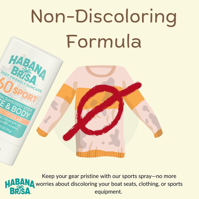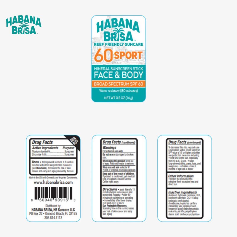 Habana Brisa Reef-Friendly Sport SPF 60 Mineral Sunscreen Stick, Broad Spectrum UVA/UVB Protection, Unscented, Water Resistant (80 Minutes), Face & Body, Made in USA - 0.5 oz