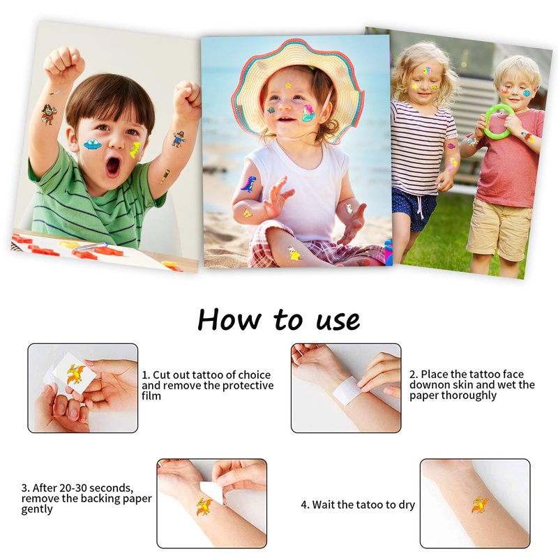 - 🐬 Durable, Waterproof and Easy to Use and Remove: Temporary kids tattoos sticker last long for 3-5 days, depends on how often the tattoo is scrubbed with soap and water. They can easily peel and glue and leave no traces. It can also be easily removed with olive oil or soap.