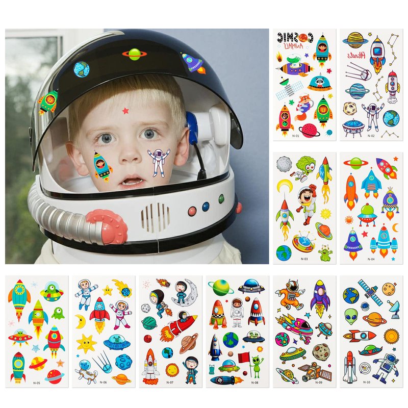 Tattoos for Kids have Interesting Designs, Planet, Astronaut, Dinosaur, Animals (60 Sheets)