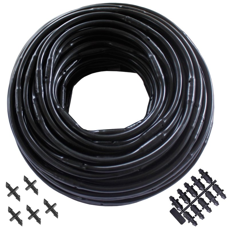 - Tubing & Inline Emitters In One. This 100 Ft Roll of 1/4 inch drip irrigation tubing has 0.5 GPH emitters built-in at 6-inch intervals for ultimate simplicity and ease of use. With this drip line tubing, there is no need to buy and install multiple individual irrigation drippers—they are already built-in. Create a flexible irrigation system setup that is easily extendable for expanding gardens.