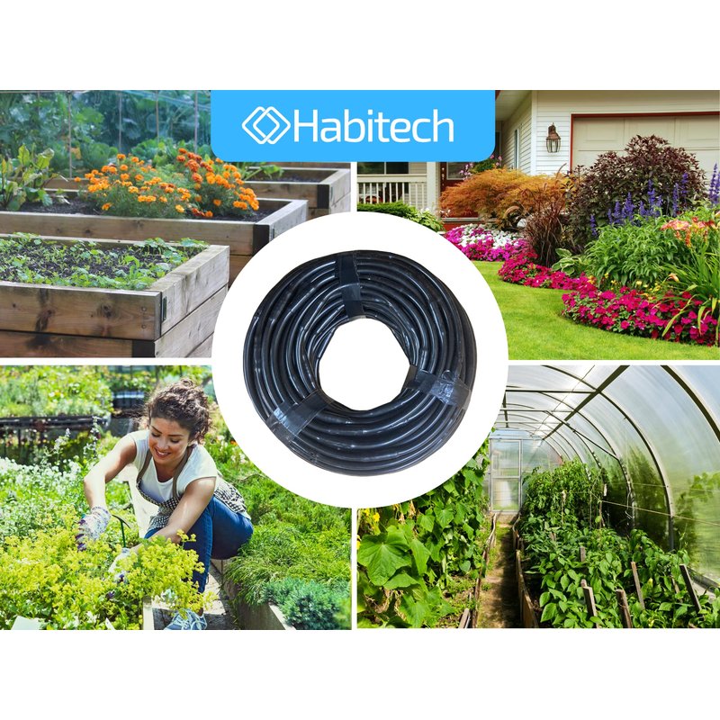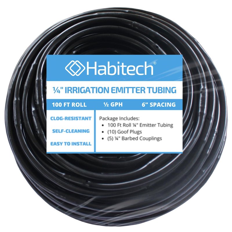 Habitech 1/4" Irrigation Dripline Tubing (100 Ft Roll) - 6" Emitter Spacing - 1/4" Drip Irrigation Fittings Included