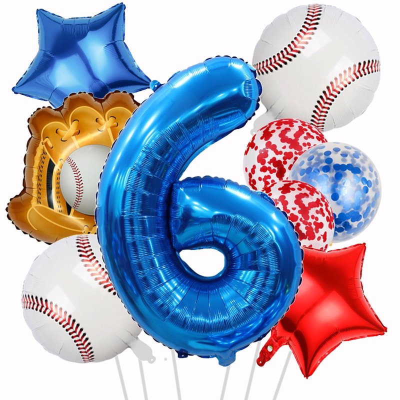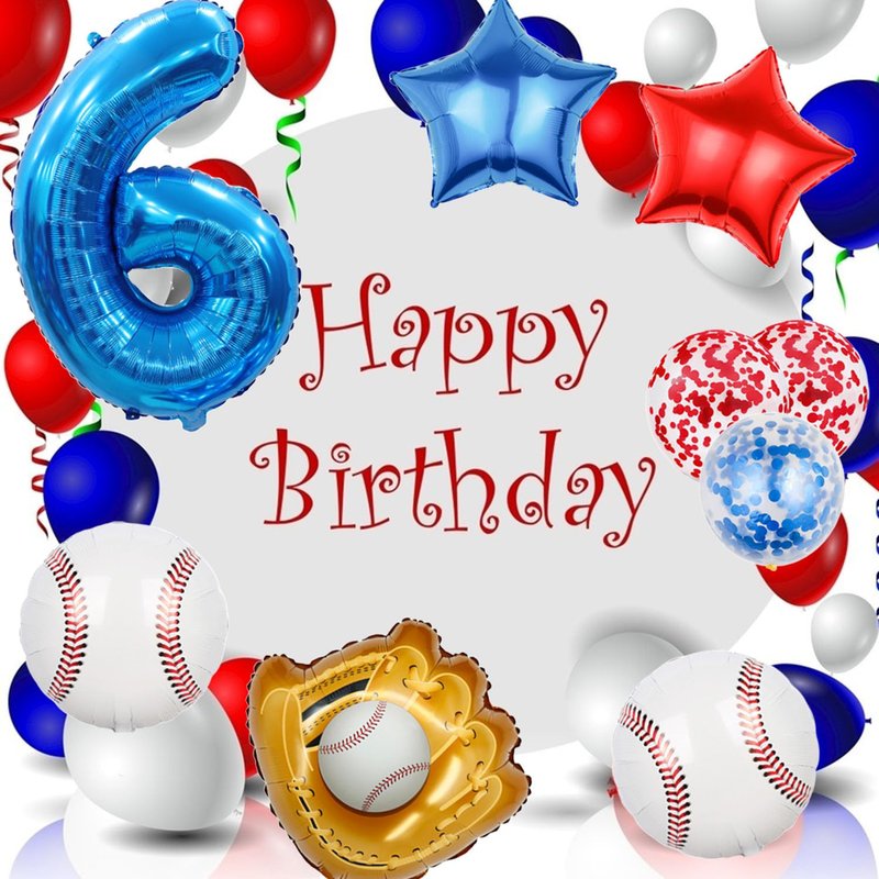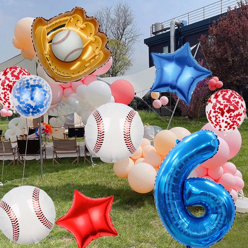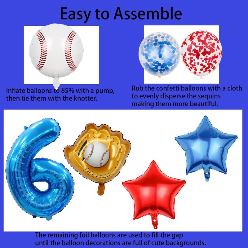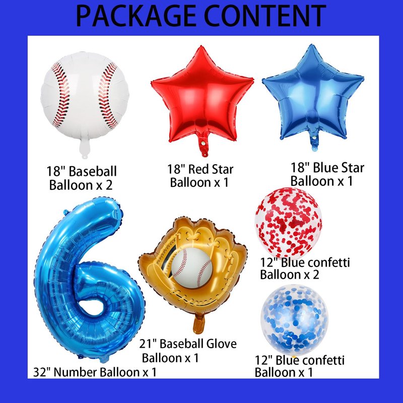 - 【Baseball Themed Decorations】:The baseball balloon kit features a fun and very amazing design that is perfect for those looking to add a touch of excitement to their baseball party. The big 6th foil balloon and baseball balloon scheme create a sporting atmosphere, while the red and blue latex confetti balloons and cute red and blue star balloons add a touch of fun. Whether you're hosting a boy's birthday party or a baseball boy's shower is sure to impress your guests.