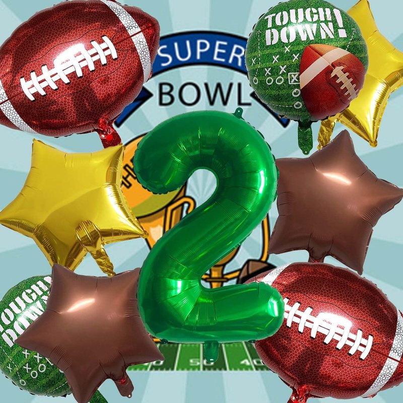 Our 9pcs football balloon set features a fun and very handsome design that is perfect for those looking to add a touch of excitement to their football party. You will get 9pcs birthday party decorations, which include 2pcs 21 by 20in rugby balloons,18in golden star balloons 2pcs, 18in brown star balloons 2pcs, 2pcs 18in football field balloons, 1pcs 32in green number 2 balloon. almost everything you need to create a stunning football-themed birthday party! Number and football Foil Balloons Kit is Perfect for boys' football games, football parties, Sports Game Day Parties, football Theme Birthday Parties, boy's Showers, and other indoor and outdoor activities. 【 Warm reminder 】: Required to be supervised by adults to prevent the danger of suffocation. There will be a little odor just after unpacking, but it can be left in the air for a while and the smell will disappear. Balloon products are consumables, and any balloon has a certain damage rate. As the foil mylar material is not elastic, please do not inflate too much, 80% full is enough. If find foil balloons deflating, mostly because the inflation valve was not self-sealed tightly, you may bother re-inflating the balloon, and pinch the valve flat and tight. Due to the transportation process or staff mistakes caused by the balloon broken, if there is damage you can rest assured to contact us to support refund exchange to give you a perfect reply satisfactory shopping experience