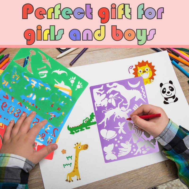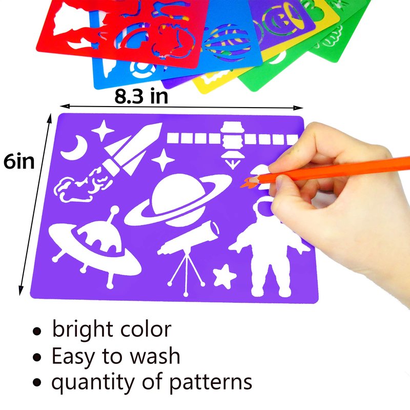 - Creativity Kit: DIY Drawing Template enhances children imagination, keep them busy at home or on the go, promote hand-eye coordination, help through learning letters and number, as well as color recognition