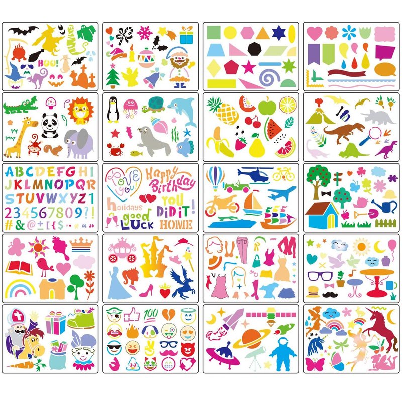 HADDIY Kids Drawing Stencils Set , 20 Pcs Plastic Stencil Kit 300+ Patterns Drawing Templates for Girls & Boys Gift and Card Making