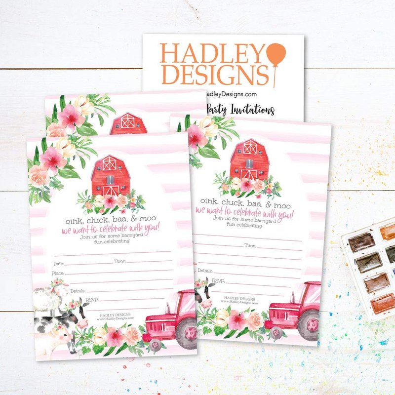 Hadley Designs 25 Farm Birthday Invitations Girl Birthday Invitations Animals - Barnyard Kids Birthday Invitations Farm Party Invitations for Girls, Farm Invites