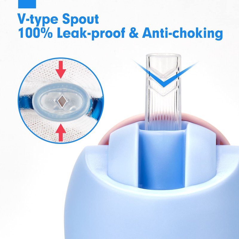 When the baby learns to give up bottle that’s sure to result in ample spills in the meantime — which is where sippy cups come in. The key to success is choosing cups that are appropriate for your child’s age and stage of development. Our 2 types of spouts provide a smooth transition, the spout type suitable for aged 6+ months, the straw type suitable for babies over 12 months. You only need to buy a cup to meet your needs.
