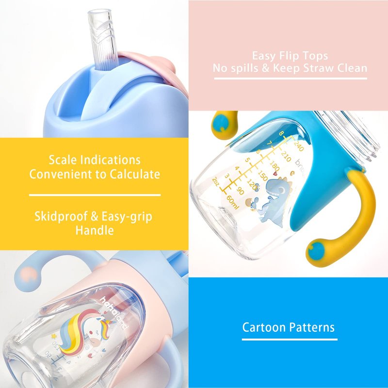 Hahaland 2 In 1 Baby Sippy & Straw Cup for Toddlers Drinking Transition 240ml/8oz