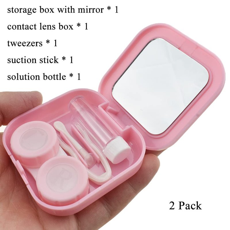 Material: High Quality Plastics Color: 2pcs Pink #Our premium contacts lens case keeps your lenses perfectly intact. #Recommended that you change the contact case once a month. #Size: Storage box with mirror: 2.7 * 2.7 * 0.85 inch (68 * 68 * 22 mm); contact lens case: 2.3 * 1.1 * 0.6 inches (57 * 27 * 15 mm), diameter: 1 inch (24mm), total weight: 33 ounces (40g).(Each contact lens case)