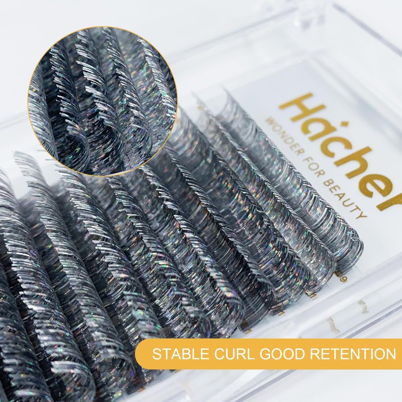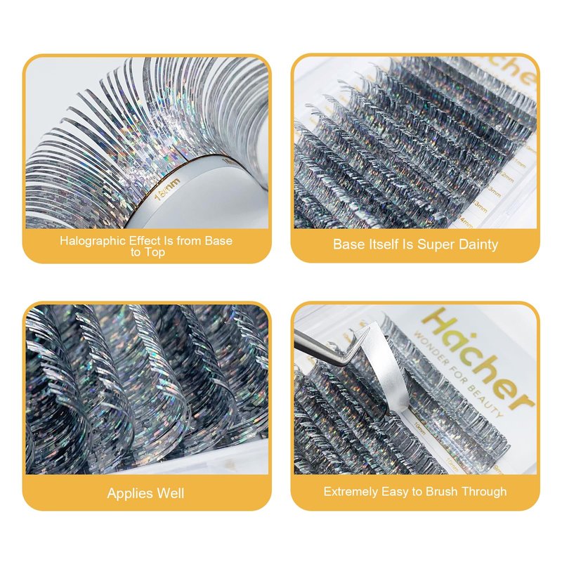 HAICHER Colored Lash Extensions CC Curl 9-18mm Mixed Lash Trays, Holographic Lash Tinsel for Eyelash Extension (Silver, Volume)