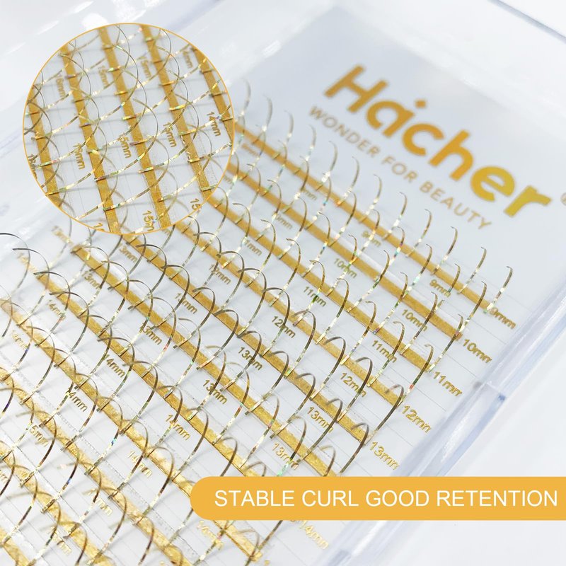 HAICHER Holographic Lash Tinsel, Colored Lash Extensions CC Curl 9-18mm Mixed Lash Trays (Gold, Spike)