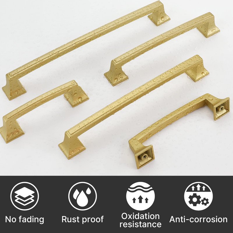 - Premium & Durable: These matte gold dresser handles are configured of zinc alloy of outstanding rust proof and anti-corrosive properties, finished with antioxidant treatment. Solid structure brings excellent weight sense and durability