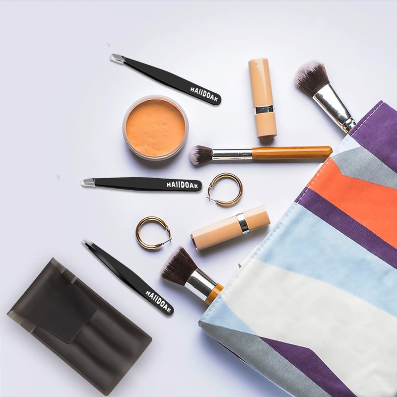 Slant tip tweezers work well for general brow grooming and other stray hair removal.