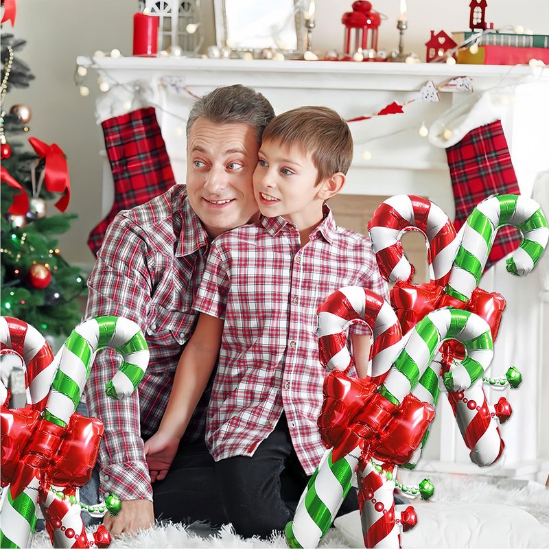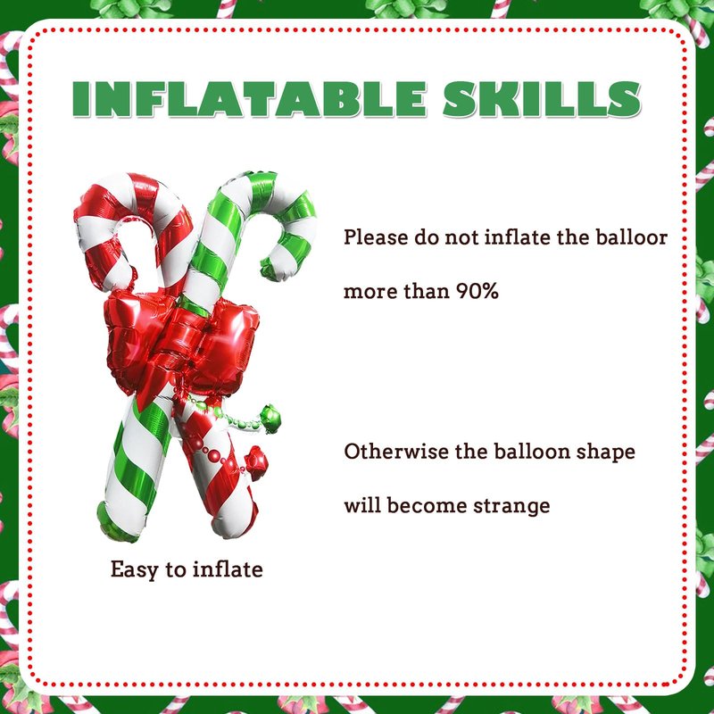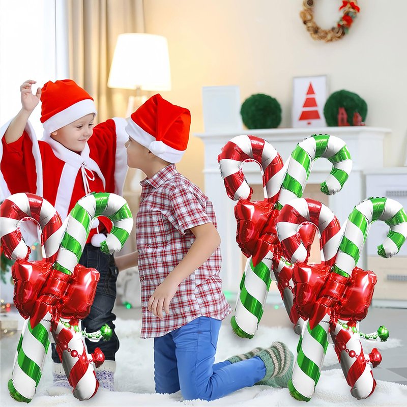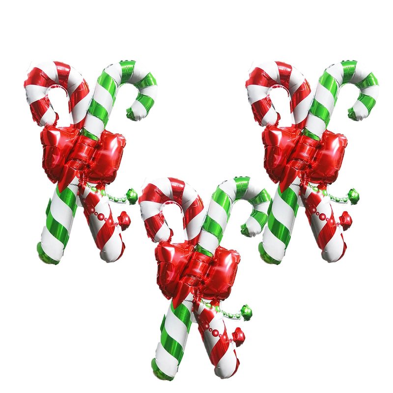 HAIMITI 3pcs Christmas Balloons Christmas Candy Canes Aluminum Foil Balloons Red Green Big Balloons Cute Cartoon Arch Kit For Christmas Kids' Party Supplies Accessories