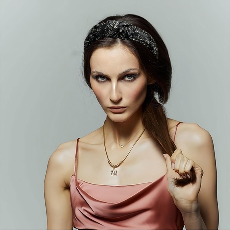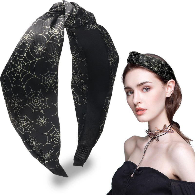 HAIMITI Halloween Headband Spider Web Hair Accessories Black Headbands Funny Wide Knotted Non Slip Hair Bands For Women Girls Hair Halloween Costume Party Supplies Decoration 1pcs