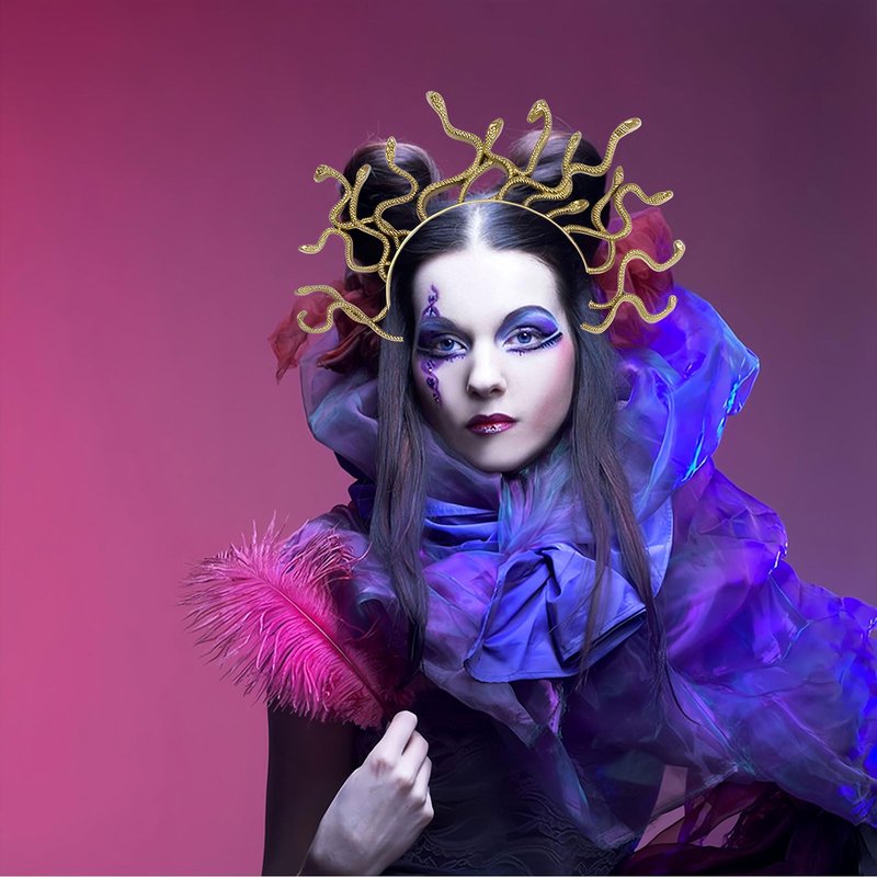 - 【Halloween Headband】-- This Medusa snake head bands are an excellent choice to enhance your overall outfit. It can make your look more complete, add a sense of mystery and sexiness, and allow you to fully release yourself on Halloween night, enjoying endless fun and excitement