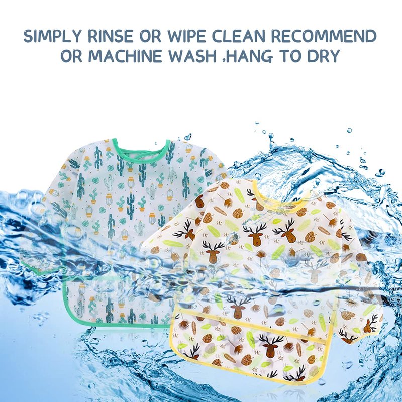 - Makes mealtime less messy and clean up easier! Essential for babies feeding time or as an art apron smock sleeved bib