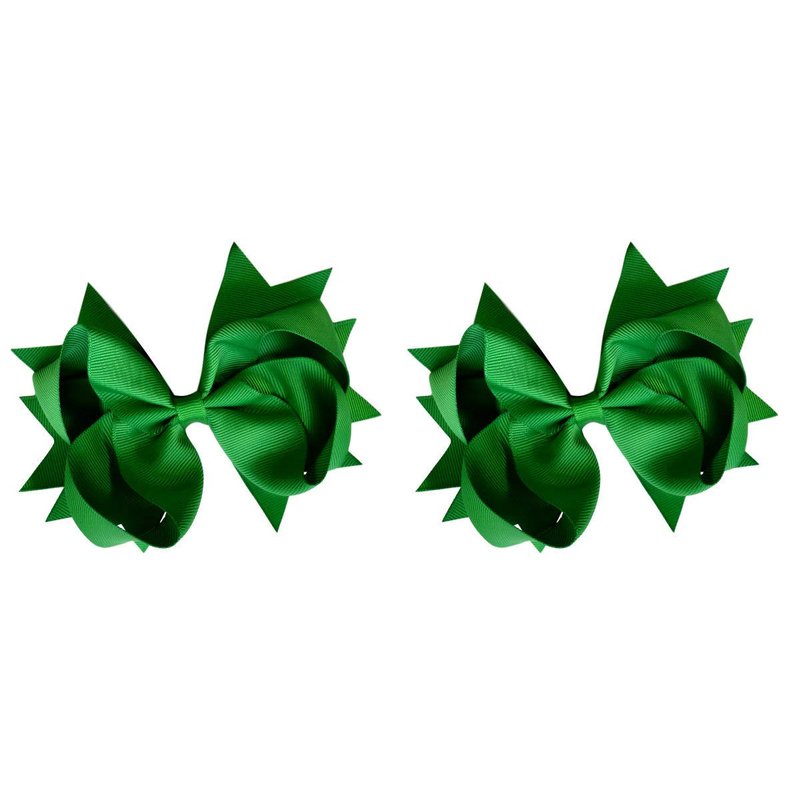 Hair Bow Set for Girls (2) 4.5 Inch Grosgrain Ribbon Hair Bows ~ Funny Girl Designs (Kelly Green)