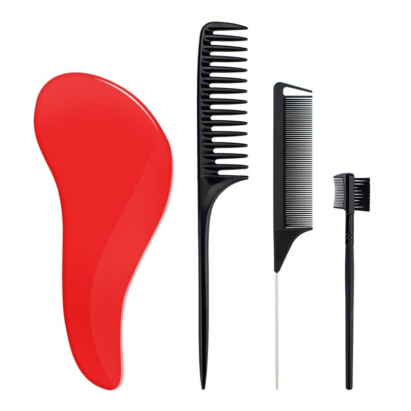 Hair Brush, 4pcs Hair Brushes for Women Men, Brush for Curly Hair Baby Mens Mini Toddler Hair Brush Red