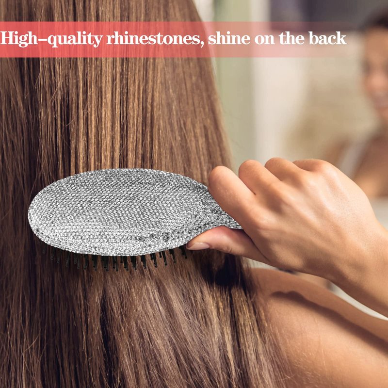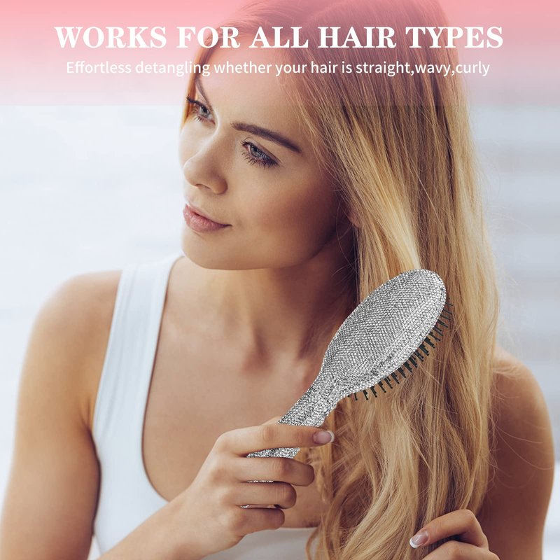 Hair Brush Detangle Hair Brushes for Women, Detangling Brush For Curly Hair, Detangle Brush, Wet Hair Brush for Thick Hair, Women Hair Brush For Curly Hair, Brushes For Hair Handmade Luxury Bling Crystal Paddle Brush Cute Rhinestone(Gray)