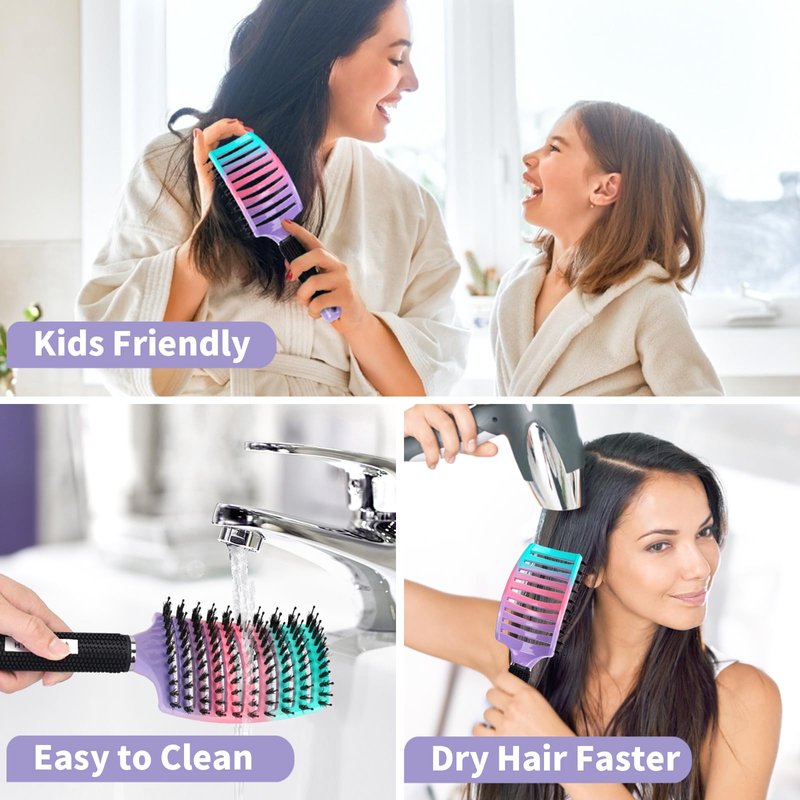 Hair Brushes for Women 2 Pack, HIPPIH Detangler Hair brush for Adult & Kids’ Wet or Dry Hair, Boar Bristle Hair Brush Getting Knots Out without Pain Adds Shine and Makes Hair Smooth