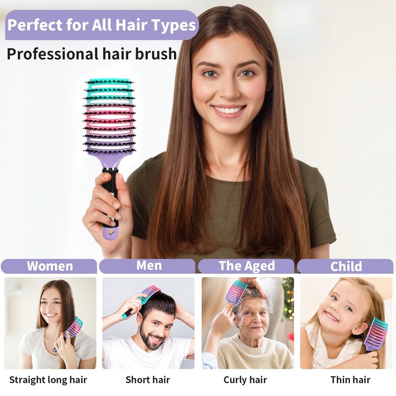 Using HIPPIH hairbrush for women thick hair can make combing become an act of enjoyment, because our hair brushes for men are made by mixed nylon and boar bristles production. With this, our vremi brush can brush hair while massaging your scale. _