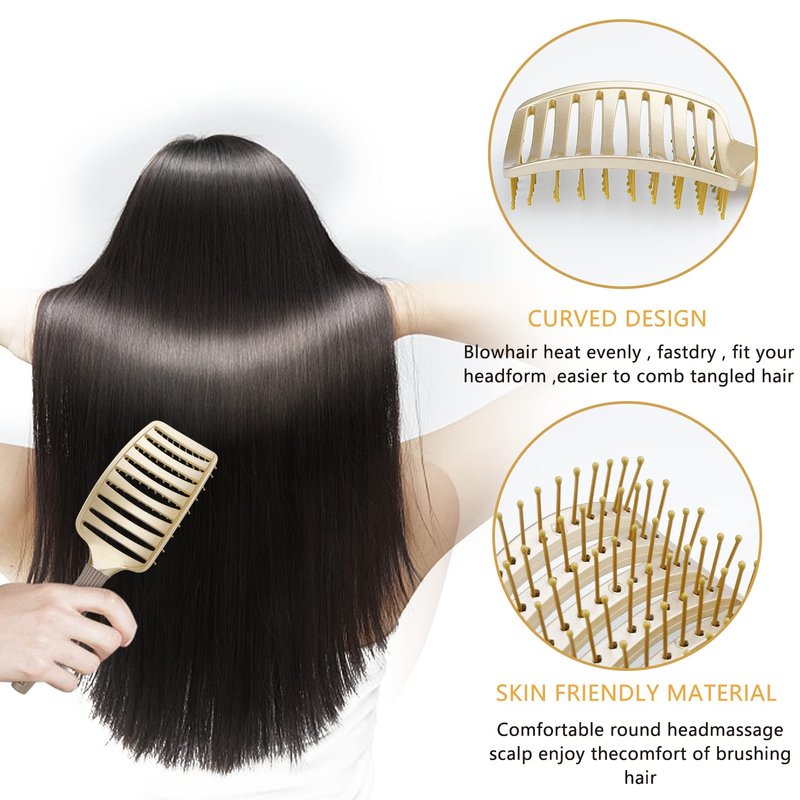 - ✔Curved Shape: Our vented hair brush is made to perfectly fit your head and scalp when blow drying your hair. The bristles on the generously spaced curved vent brush will massage your scalp while you dry your hair, enhancing blood flow and resulting in healthier hair.