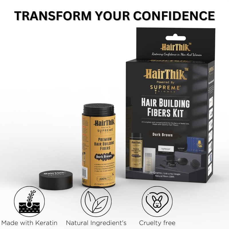 Transform your Hair and regain confidence with HairThik, the ultimate hair building fiber kit designed to combat thinning hair. Crafted with premium keratin hair fibers, HairThik offers a solution for concealing hair loss, balding, or fine hair. Made to seamlessly blend with your existing hair, creating a fuller, thicker appearance instantly. Say goodbye to insecurities and hello to confidence with HairThik - your go-to solution for hair revitalization.