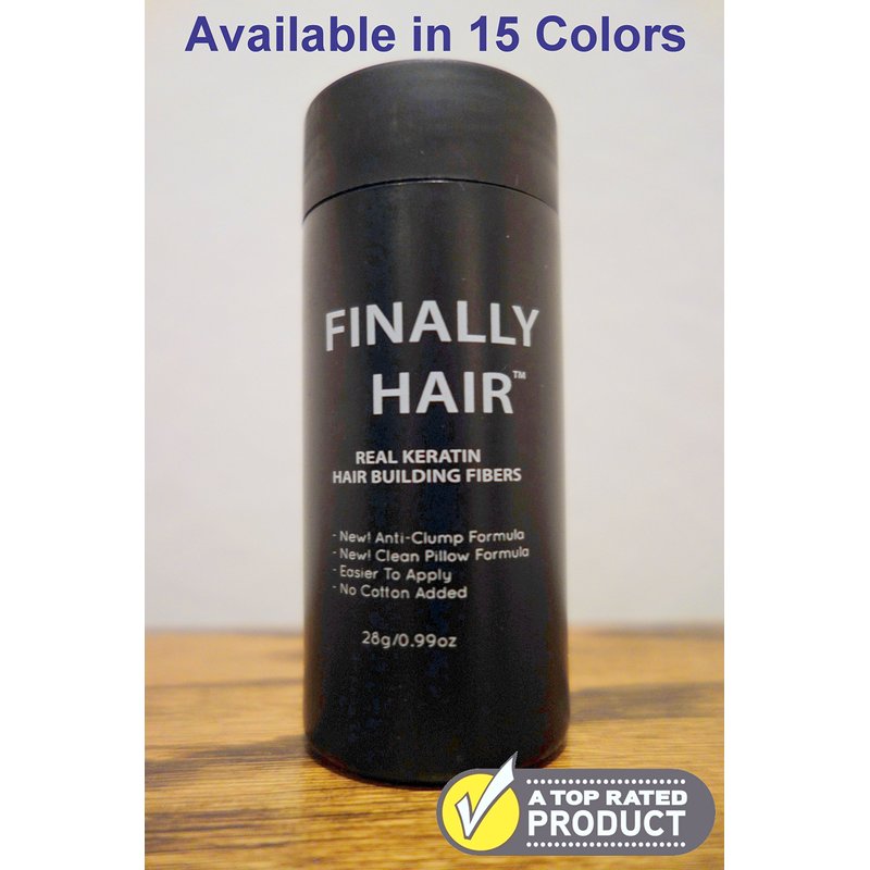 THE BEST HAIR FIBERS ON THE MARKET Real Keratin Fibers - No itchy wool or fillers like many others. Anti-Clump Formula - Doesn't clump up or absorb moister and get fat. Only fibers designed to de-clump when you shake them! Clean Pillow Formula - Hardly comes off when used with Finally Hair Fiber Lock hair spray. No wool to itch and no silica. Easy To Apply - Applicator bottle makes it very easy to apply. Try the rest? This is the best. Highest Quality On The Market! Also available in Black, Dark Brown, Medium Brown, Light Brown, Blonde, Medium Blonde, Grey, and Red Suggested Retail $39.95