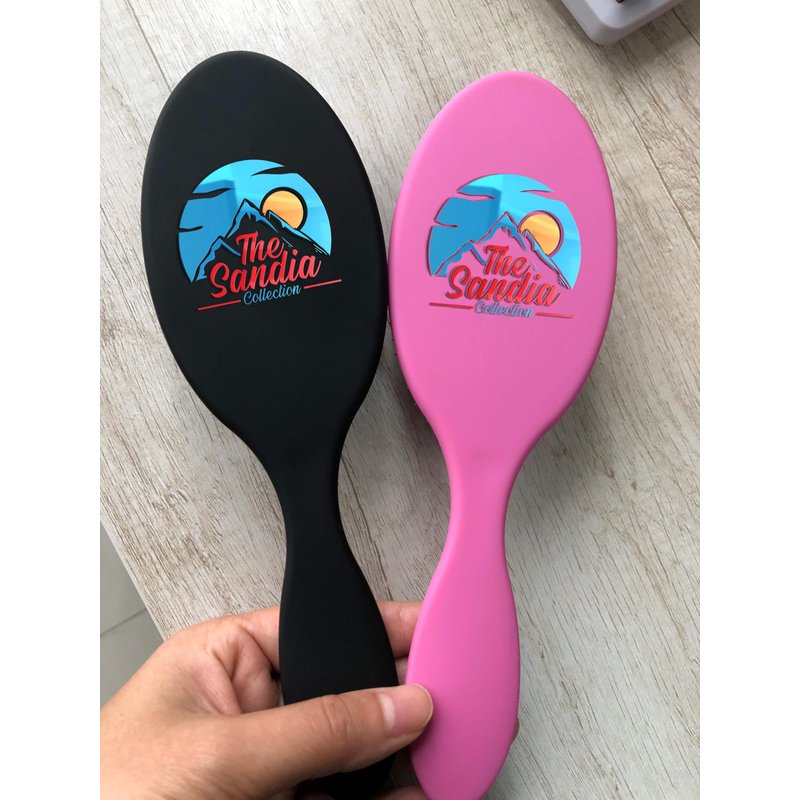 You're getting ready for that very important job interview, you've showered, put on your make, and you're wearing your best dressed-to impress prodessional outfit. You go to reach for your hairbrush and...it's missing! We've all been there, which is why we at the Sandia Collection are offering a solution - a detangling wet hairbrush to replace the one you misplaced or perhaps to have a spare. At home? On The go? It doesn't matter where you are, we've got you covered. Introducing the Ultimate Detangling Waterproof Hairbrush: Your Perfect Hair Care Companion! Are you tired of battling with tangled hair after every shower? Do you struggle with finding a hairbrush that can withstand the rigors of wet hair while effortlessly detangling knots? Look no further! Our revolutionary detangling waterproof hairbrush is here to transform your hair care routine and give you smoother, tangle-free locks with ease. Why Our Detangling Waterproof Hairbrush? Unmatched Detangling Power: Say goodbye to painful tugging and pulling! Our hairbrush features specially designed bristles that glide through knots and tangles with minimal effort, leaving your hair feeling silky smooth and manageable. Waterproof Design: Unlike traditional hairbrushes that become waterlogged and lose their effectiveness when exposed to water, our waterproof hairbrush is designed to thrive in wet conditions. Whether you're in the shower, at the beach, or by the pool, our brush will continue to deliver exceptional detangling performance, making it the perfect companion for all your water-related activities. Gentle on Hair and Scalp: We understand the importance of caring for your hair and scalp, which is why our hairbrush is crafted with your comfort in mind. The flexible bristles gently massage the scalp while detangling, promoting blood circulation and stimulating hair growth for healthier, happier locks. Durable and Long-lasting: Made from high-quality materials, our hairbrush is built to last. Say goodbye to flimsy, easily broken brushes and hello to a durable grooming tool that will stand the test of time, delivering reliable performance day after day. Versatile Usage: Whether you have curly, straight, thick, or fine hair, our detangling waterproof hairbrush is suitable for all hair types. From children to adults, everyone can benefit from the effortless detangling and smoothing action of our brush. Portable and Travel-friendly: With its compact size and lightweight design, our hairbrush is the perfect travel companion. Slip it into your gym bag, suitcase, or beach tote, and enjoy tangle-free hair wherever life takes you. Easy to Clean: Cleaning your hairbrush is a breeze thanks to its waterproof design. Simply rinse it under running water to remove any hair or debris, and it's ready for your next styling session. Stylish and Ergonomic: Who says practicality can't be stylish? Our hairbrush combines functionality with aesthetics, featuring a sleek design and ergonomic handle for comfortable grip and effortless styling. The Benefits of Tangle-Free Hair Investing in a detangling waterproof hairbrush isn't just about achieving smoother, more manageable hair—it's about transforming your hair care routine and enjoying a host of benefits: Time-saving: Spend less time battling with knots and tangles and more time enjoying life's moments. Less Breakage: Tangled hair is more prone to breakage and damage. By using our hairbrush, you'll minimize breakage and keep your hair looking healthy and vibrant. Improved Confidence: Say goodbye to bad hair days and hello to newfound confidence with beautifully detangled locks that are ready to take on the world. Enhanced Styling: Smooth, tangle-free hair is easier to style, whether you're rocking a sleek ponytail, bouncy curls, or a chic updo. Join the Tangle-Free Revolution Today! Ready to experience the joys of tangle-free hair? Don't let knots and tangles hold you back any longer. Invest in our detangling waterproof hairbrush today and say hello to smoother, more manageable hair that looks and feels amazing.