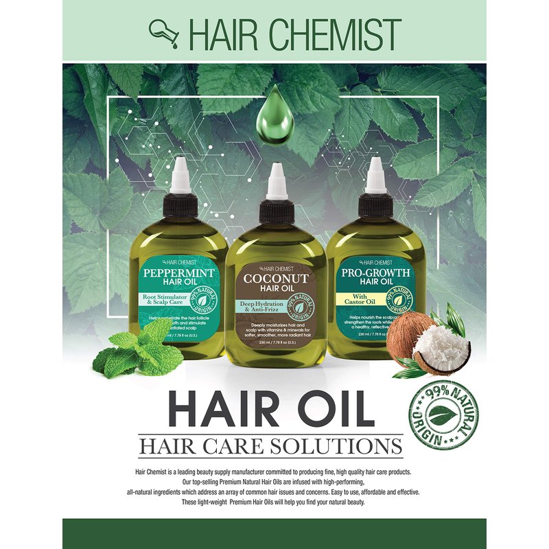 The fatty acids in Macadamia Oil help to add shine and rejuvenate, which in turn helps prevent brittle strands. It is great for taming the hair of frizz, tangles, and dullness. It also strengthens the hair to help prevent future breakage, hydrates and enhances shine.