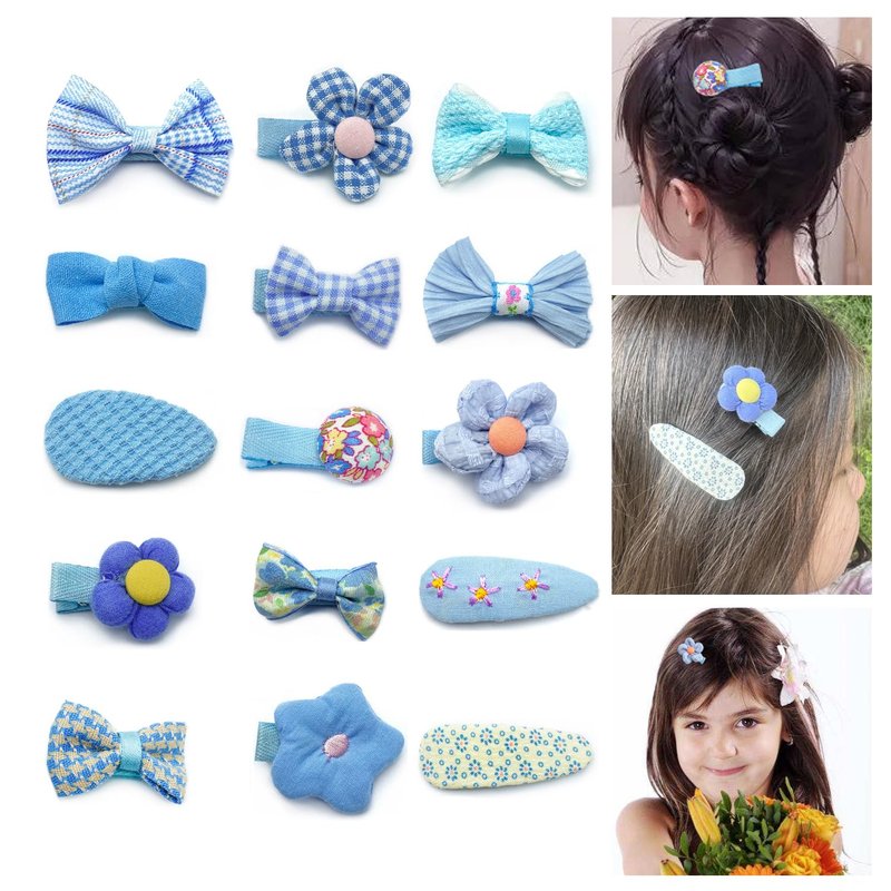 Introducing the ultimate hair accessory set for your little one! This adorable collection of 15 handmade hair clips is a must-have for any fashionable girl. Crafted with love and attention to detail, these clips feature charming bows made from high-quality fabric in a variety of colors and patterns. From classic solids to playful prints, there's something to suit every mood and outfit. Whether you're dressing up for a special occasion or just want to add a touch of whimsy to your child's everyday look, these hair clips are the perfect choice. Designed with comfort in mind, they're gentle on delicate hair and won't cause any pulling or tangling. Easy to use and versatile, these clips can be mixed and matched to create endless hairstyles. Treat your little one to the gift of style and let their personality shine with this delightful hair clip set.