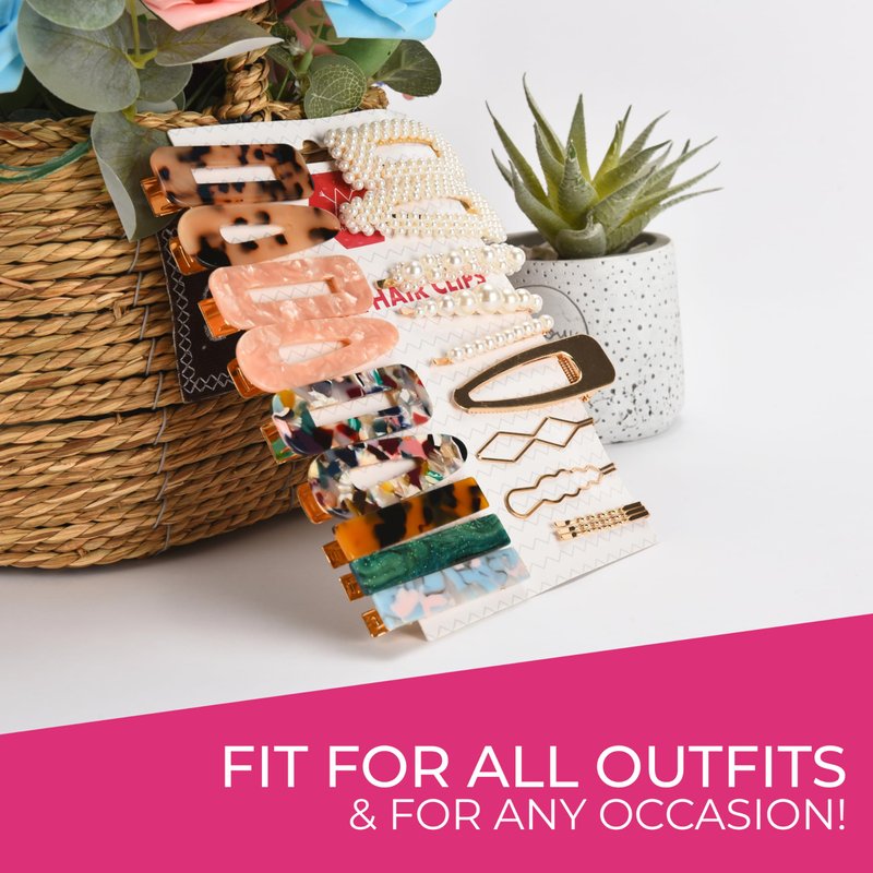 - VARIETY OF HAIR BARRETS CLIP - Get a variety of hair accessories in one set, including resin clips, acrylic clips, and metal snap hair clips, perfect for creating different hairstyles looks.