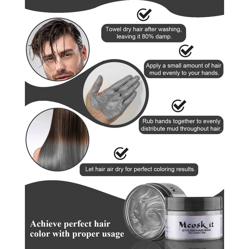 - 【INSTANT HAIR COLORING】:🌈 Our hair wax has a powerful coloring effect. After washing your hair, towel dry it until it is 50% to 80% damp, then apply our hair wax to completely cover your hair and easily achieve the desired color. Apply a small amount of hair wax evenly to both hands, then rub and massage the hair multiple times to ensure complete adhesion for the perfect effect.