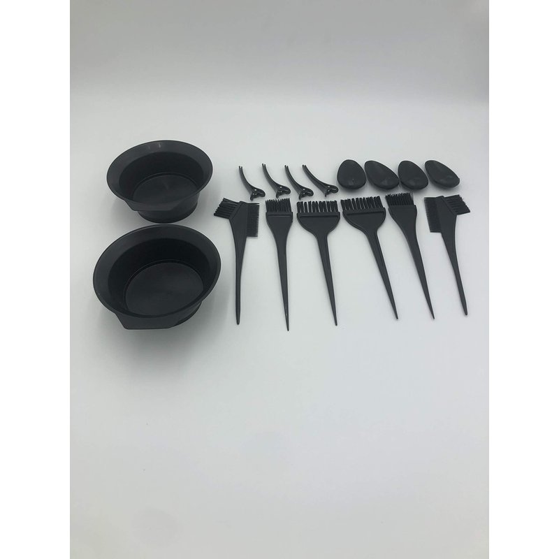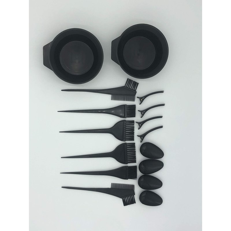 - Includes: 2x hair dye bowls, 4x earmuffs, 2x hair dye combs, 4x hair dye brushes, 4x 4 colored hairpins, 2x Three-piece suit of disposable gloves, shawl and shower cap, 1x latex gloves