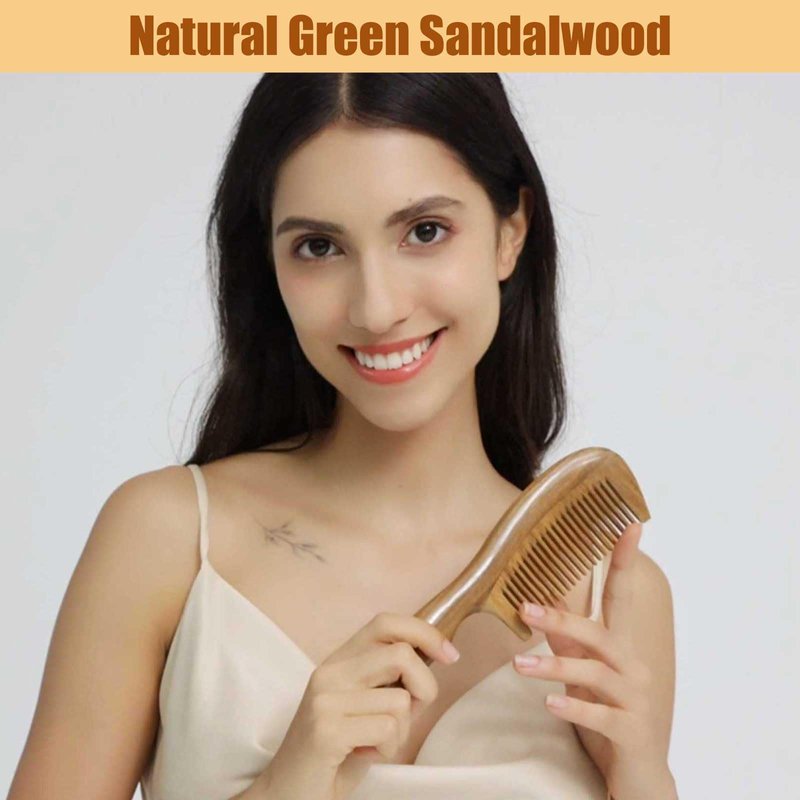 - Anti-static green sandalwood comb for hair growth: greeen sandalwood will not generate any static, the wood tooth comb can effectively reduce the possibility of hair tangles or breakage. Furthermore, greeen sandalwood comb is rich in natural oil that serves as a natural curing agent for your hair