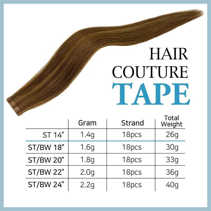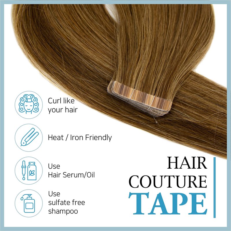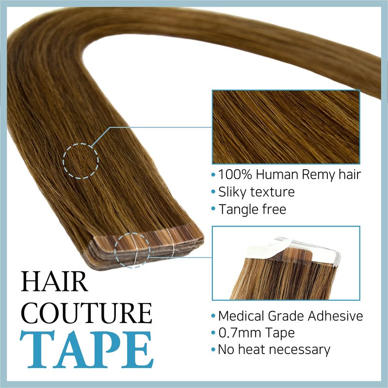 - TAPE EXTENSIONS – What sets Hair Couture Tape Extensions apart from its competitors is beautiful blonde colorways, quality double drawn Remy hair and Medical Grade Adhesive bond. Clean install and removal. No residue! Our bond “sandwich” process uses no heat or equipment, just a rattail comb. Meeting the experts’ expectations, Fusion tape extension was produced with extraordinary results at an affordable price. Stylist tested, approved, and recommended!