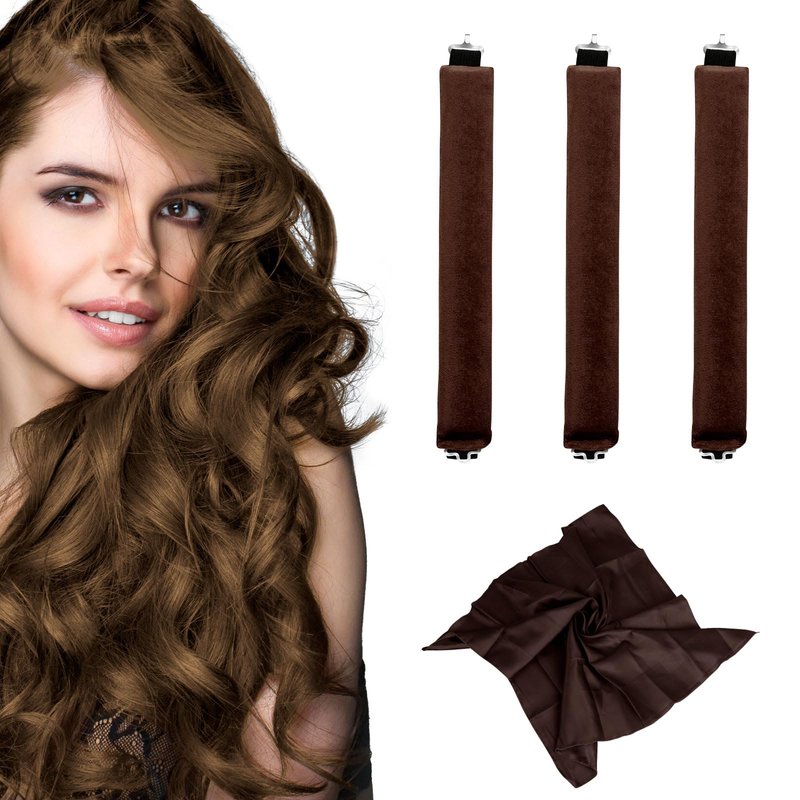 Hair Curling Rods 3PCS Jumbo Velvet Hair Curler Set Heatless Hair Roller Rods with Silk Headscarf for Women Hair Curling Volume Hair Blow out Hair Style Brown