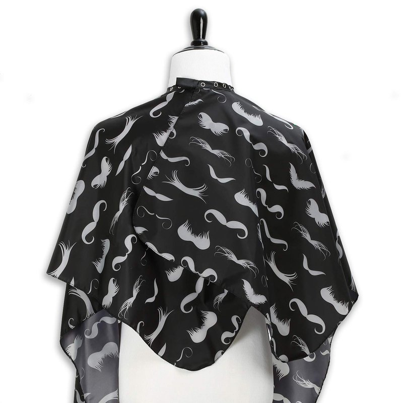 - Hair Stylist Cape with black and gray mustache design will protect your clothes from hair clippings. This design is geared towards men for barber shop haircuts and styles as well as the at home cuts. This reusable salon cape is perfect for any hair care situation.