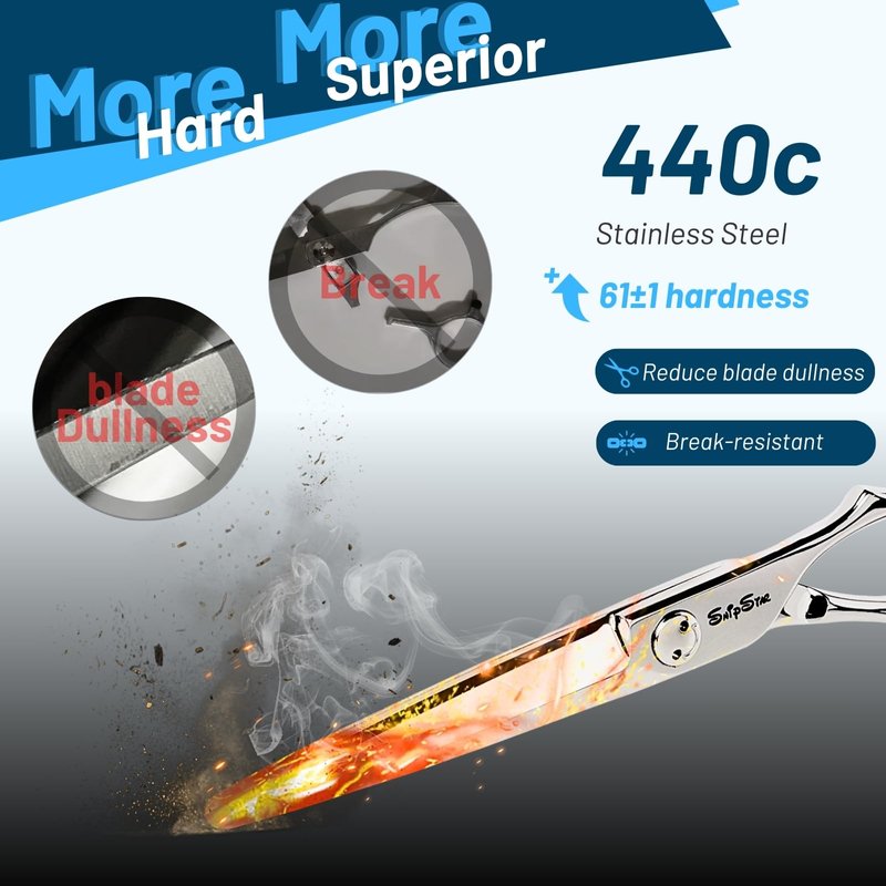 - 【We Solve Rust Problem】scissors for cutting hair are made of 440C Japanese stainless steel, it is internationally recognized as one of the high-end hair scissors material with the perfect combination of high hardness and high toughness.