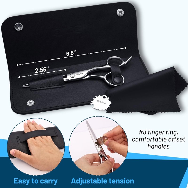 Hair Cutting Scissor CNC 440C Professional Hair Scissor 6.5 inch Sharp Convex Blade Shears Hair Cutting Round Tip Hair Shears with Tension Adjuster and Leather Case for Beginner Hairdresser and Home