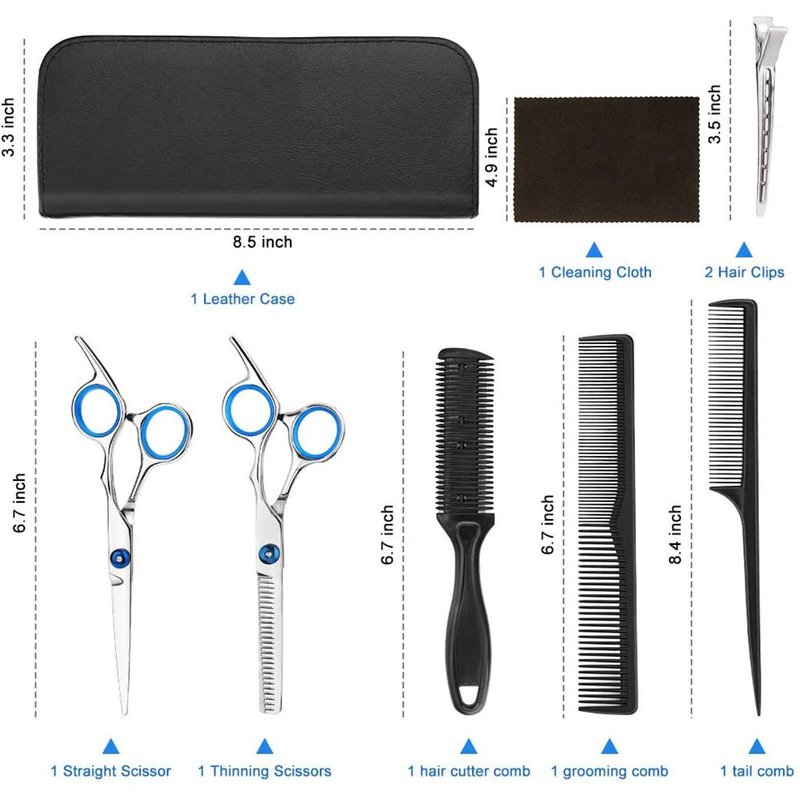 This hair-cutting and thinning scissors kit has 10 items such as barber scissor and shear made of superior stainless steel for salon and home use. This is suitable for men, women and even for kids. Nice to have one set per household for emergency hair cutting needs as well.