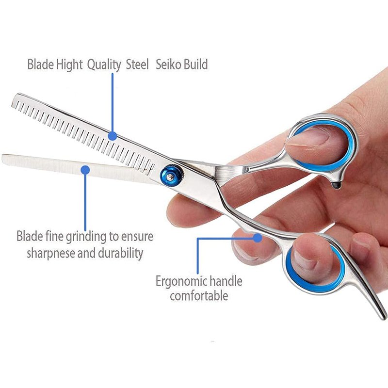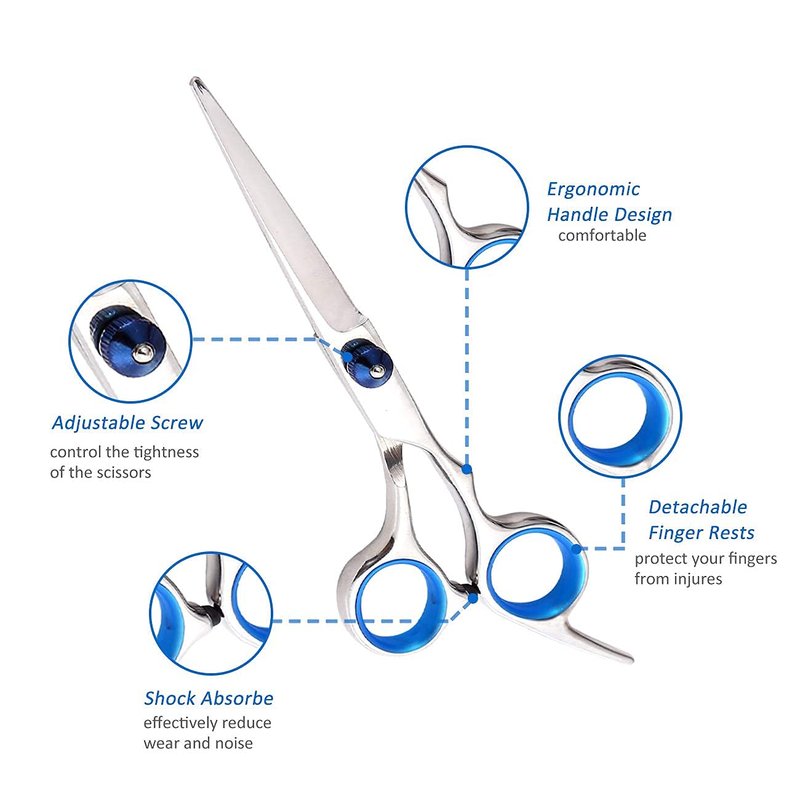 - [Ergonomic Design] This professional hair shears are equipped with an adjustment screw, you can effortlessly fine-tune this scissor to your desire of tension and tightness. Its distinctive easy grip handle design allows the scissor to adjust fingers comfortably, which will provide a perfect haircut experience