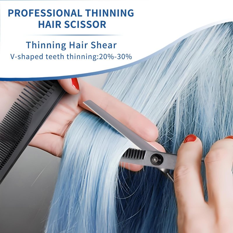 5.28 Teeth Thinning Scissors: 25-28% thinning rate, sharp cuts, no hair pull.