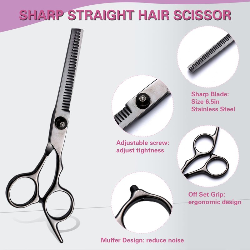 The hair cutting scissors tempered with precise blades and hand-sharpened cutting edges give a very clean cut. The hair thinning scissors with evenly thinning edges teeth, give your hair a suitable thinning rate and razor edge with ease, the hair trimming scissors haircut shears will not damage hair ends, great for point cutting, feathering, and texturizing.