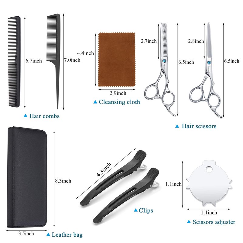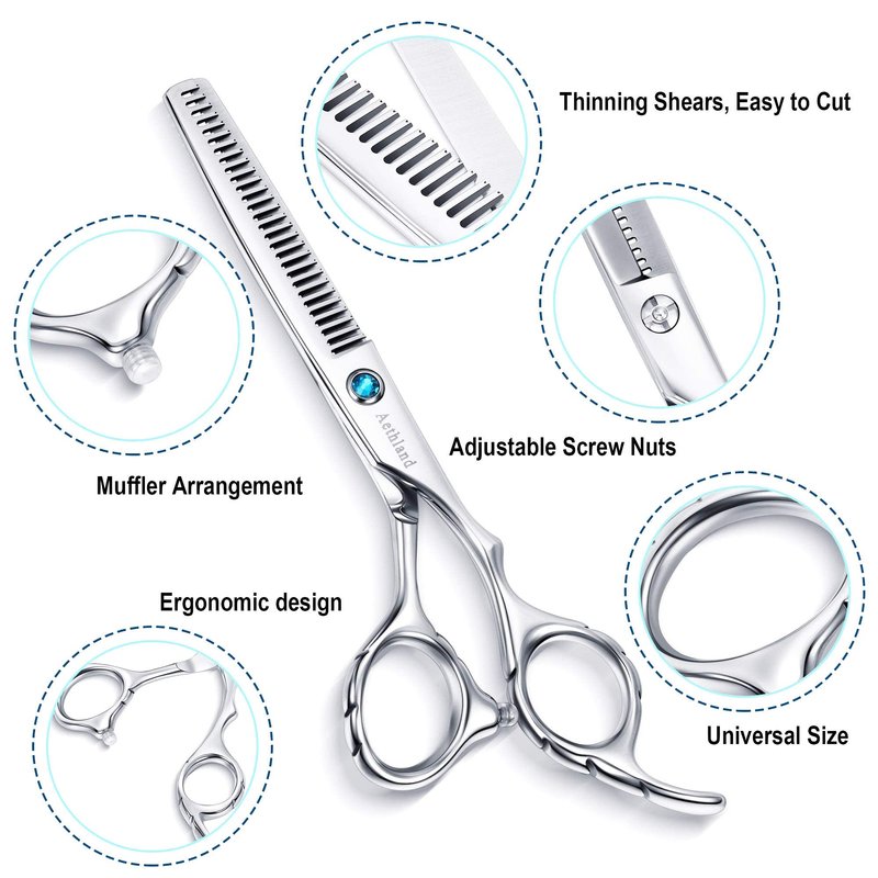 Hair Cutting Scissors Kit, Aethland Professional Barber Hairdressing Scissors Set (Trimming Shaping Grooming Thinning Shears) for Men Women Pets Home Salon Barber Haircut, 6.5" Japanese 9CR SS
