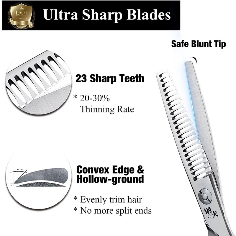 - ✄PREMIUM QUALITY - Made of high-quality Japanese stainless steel and tempered with precise blades and hand-sharpened edges, our hair cutting/thinning scissors is a good choice to trim or texturize hair for stylish looks.